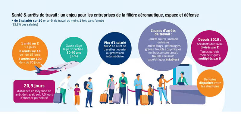 Dans une filière aéronautique, espace et défense à la fois interdépendante et sous forte pression de production, la santé au travail est plus que jamais un enjeu stratégique. Les derniers enseignements d’IPECA révèlent une réalité contrastée : le secteur fait globalement mieux que le marché, mais la dynamique d’absentéisme reste en hausse et dépasse toujours le niveau de 2019. Avec 35,8 % de salariés en arrêt au moins une fois dans l’année, une fréquence de 1,7 et une durée moyenne de 20,3 jours (soit 7,5 jours par salarié), la stabilité apparente masque des fragilités opérationnelles bien réelles.