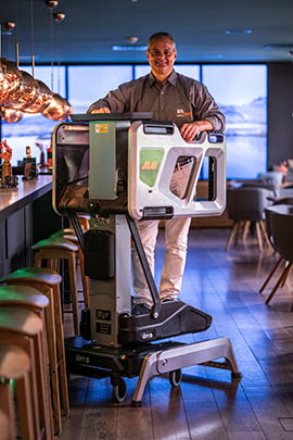 Le système de pliage rapide et la structure légère permettent de passer du stockage à l’intervention en quelques gestes, puis de revenir en zone de rangement avec un minimum d’efforts. En exploitation, l’appareil reste discret, limitant l’impact visuel et les perturbations dans les espaces très fréquentés.