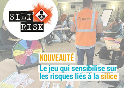 Chez CLIEMA, suite à plusieurs demandes de nos clients, nous nous sommes penchés sur cette problématique afin d’élaborer un atelier dédié. Notre nouveau jeu Sili'Risk permet d'aborder le risque silice en entreprise de manière fun et participative. C'est une animation qui se joue en équipes et se compose de plusieurs défis, ponctuée d'échanges et de questions/réponses avec notre formateur expert sur le risque chimique.