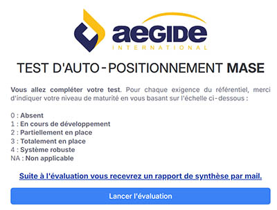 Le test d’auto-positionnement est un outil d’évaluation basé sur les exigences clés du référentiel MASE. Présenté sous forme de questionnaire court (19 questions), il analyse notamment :