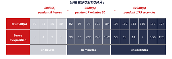- 1 salarié exposé sur 5 développera une perte auditive avant 50 ans.