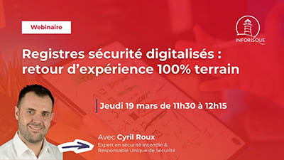 Rejoignez-nous lors de ce webinaire : « Registres sécurité digitalisés : retour d’expérience 100 % terrain » présenté par Cyril ROUX, le 19 mars 2026 de 11h30 à 12h15.