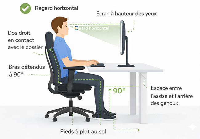Même le meilleur fauteuil de bureau doit être correctement réglé :